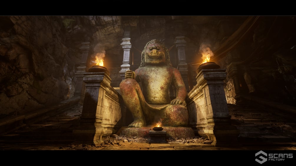 Mountains Ancient Temple based on photogrammetry content could give you a realistic, believable world. But you can always crank it up to a more fantasy style with a proper lighting setup. This example you can find on our demo map. Immersive and atmospheric level and dungeons environment is what brings fantasy games to the next level. The map is huge and contains a few different samples join in one long walkthrough. It's the biggest map we did. We hope it will be useful for you.