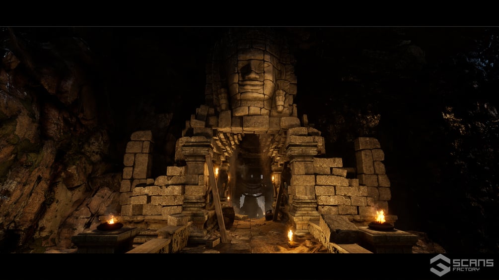 Mountains Ancient Temple based on photogrammetry content could give you a realistic, believable world. But you can always crank it up to a more fantasy style with a proper lighting setup. This example you can find on our demo map. Immersive and atmospheric level and dungeons environment is what brings fantasy games to the next level. The map is huge and contains a few different samples join in one long walkthrough. It's the biggest map we did. We hope it will be useful for you.