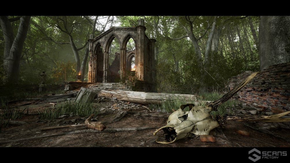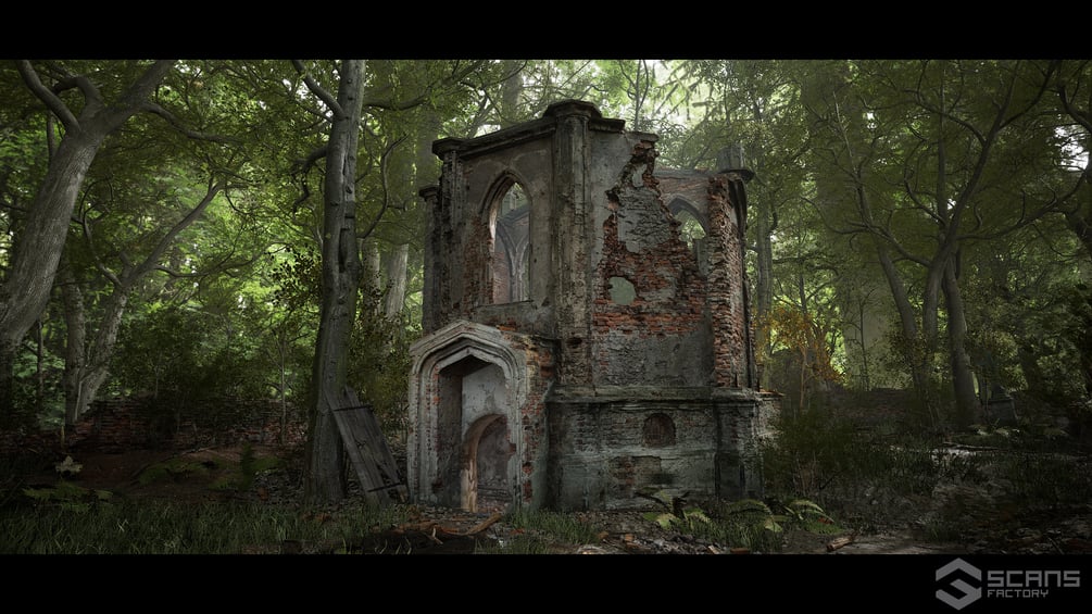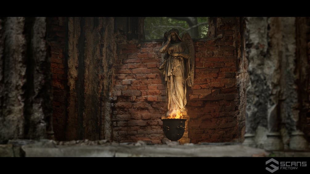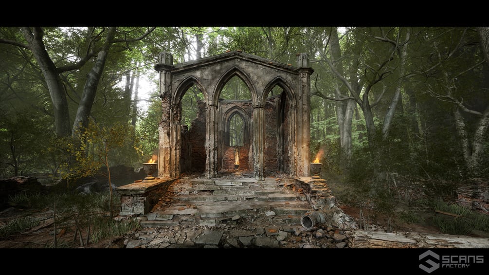 Beautiful crypt ruins, destroyed walls, unique detail, and realistic lighting. Based on photogrammetry, work with UE4 and UE5 with two lighting pipeline versions (static and lumen).